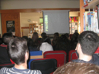 No auditório encontravam-se os alunos do 9º C, 9ºD e o 11º TAS. Foi solicitado aos alunos que, junto de amigos, divulgassem e partilhassem esta informação.